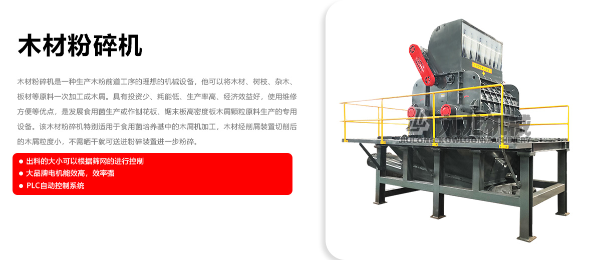木材粉碎機(jī)是生產(chǎn)木粉前道工序的理想機(jī)械設(shè)備。它可以將木材、樹(shù)枝、雜木、板材等原料一次加工成木屑,具有投資少、耗能低、生產(chǎn)率高、經(jīng)濟(jì)效益好,使用維修方便等優(yōu)點(diǎn),是發(fā)展食用菌生產(chǎn)或作刨花板、鋸末板高密度板木屑顆粒原料生產(chǎn)的專(zhuān)用設(shè)備。木材經(jīng)削屑裝置切削后的木屑粒度小,不需曬干就可送進(jìn)粉碎裝置進(jìn)行下一步的粉碎。